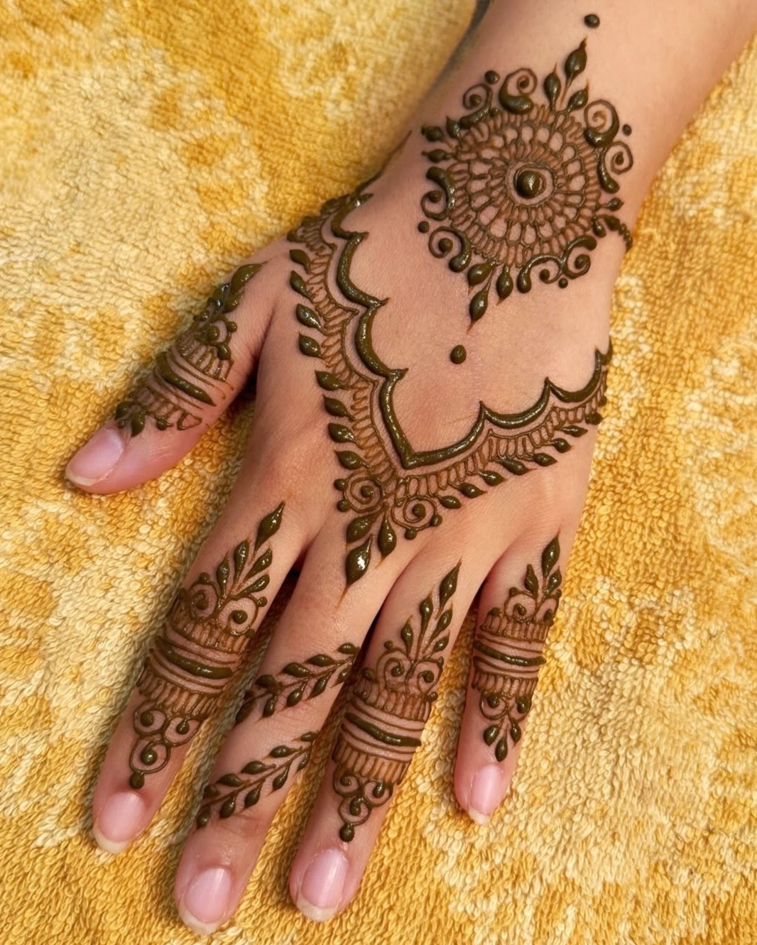 Party Henna- Wrist to palms both hands $450 Feet included $550